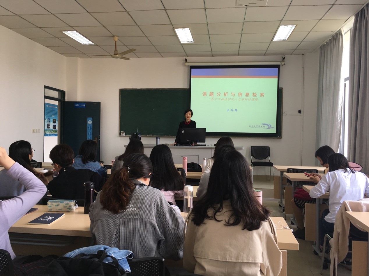 2019年3月28日下午,图书馆信息中心的王咏梅老师给36365官网研究生做了主题为“课题分析与信息检索”的讲座,就开题报考撰写和小论文发表刊物做了相关介绍。讲座在36365线路检测中心4楼举行。