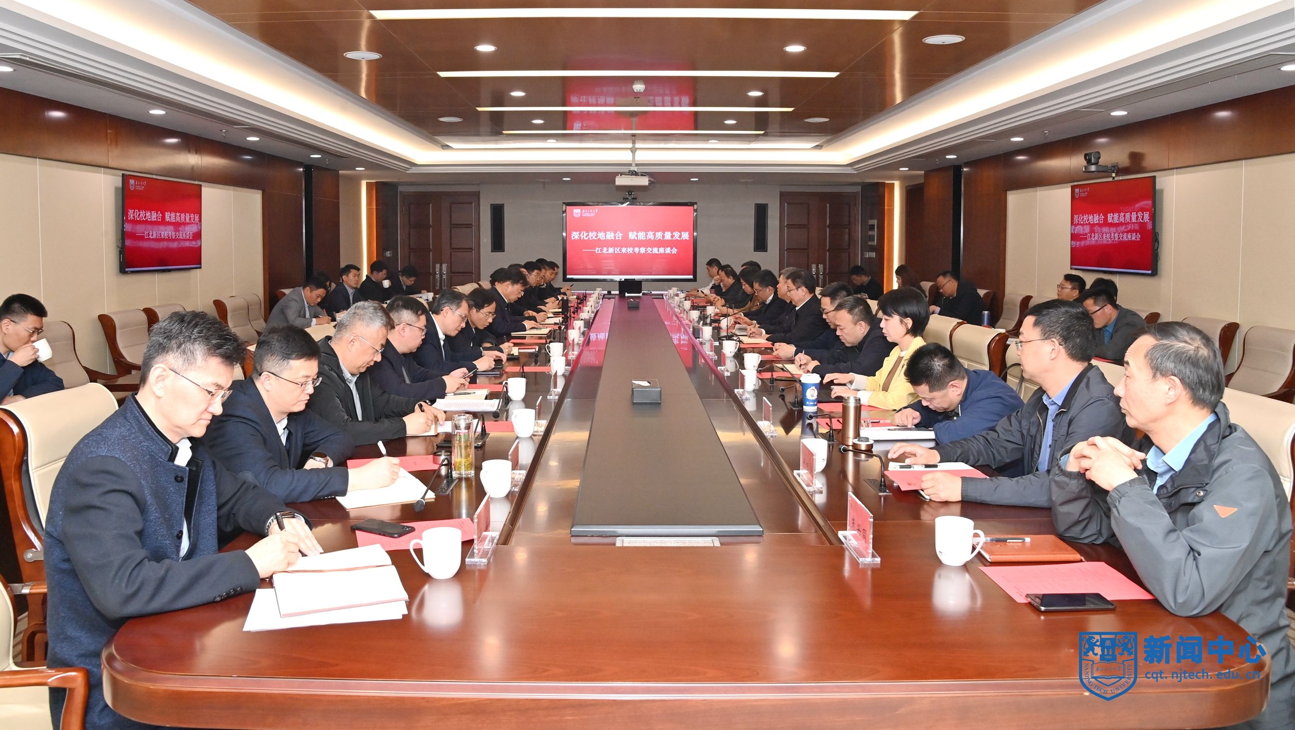 江北新区管委会综合部、科技创新和大数据管理局、投资促进和商务局、建设与交通局、教育和社会保障局、研创园管办、生命健康办、新材料科技园管办、顶山街道负责人,扬子国资集团、科投集团、江北新区供电公司负责人,学校相关职能部门、直属平台、直属企业负责人参加座谈。