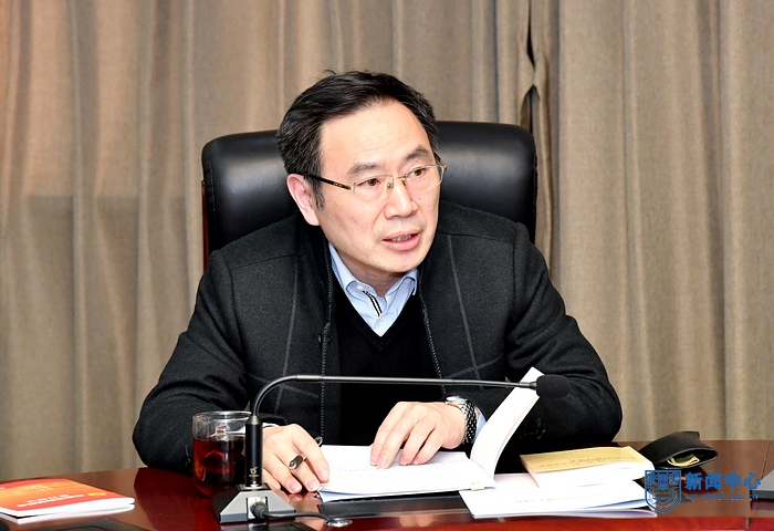 4月21日下午,校党委理论学习中心组举行集体学习会,专题学习习近平总书记关于全面从严治党的重要论述和《党委(党组)落实全面从严治党主体责任规定》,深入交流学习体会。