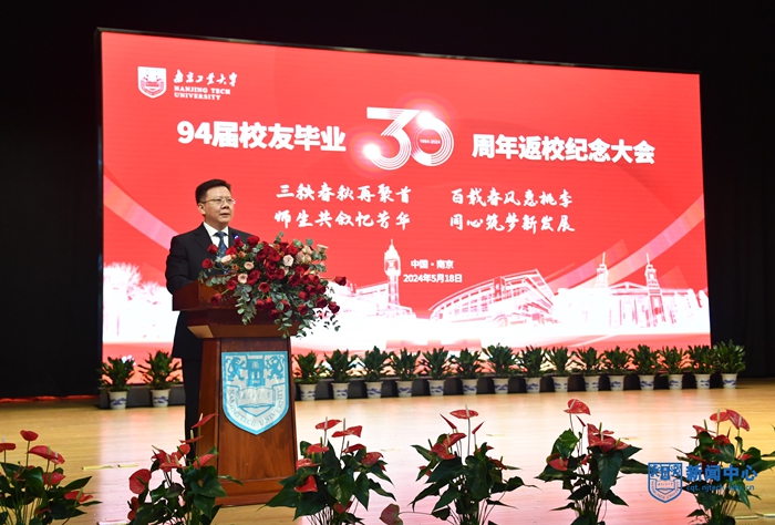 5月18日上午,学校在江浦校区博雅堂举行1994届校友毕业30周年返校纪念大会。校领导芮鸿岩、蒋军成、吴胜红、郭万牛、刘大卫,党委常委夏侃、黄锁明出席大会。副校长陆伟东主持会议。