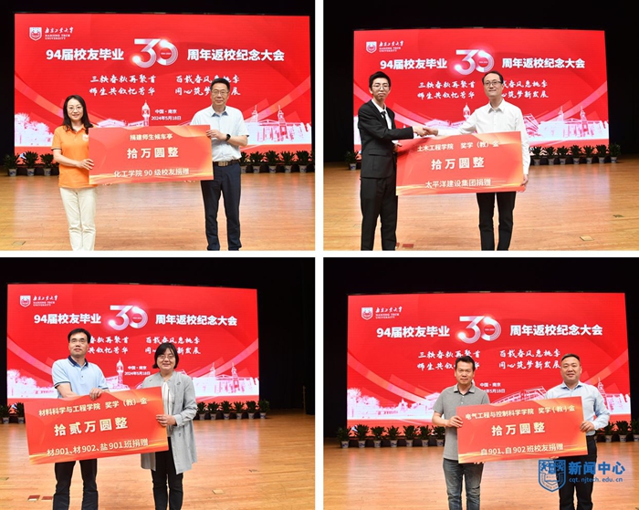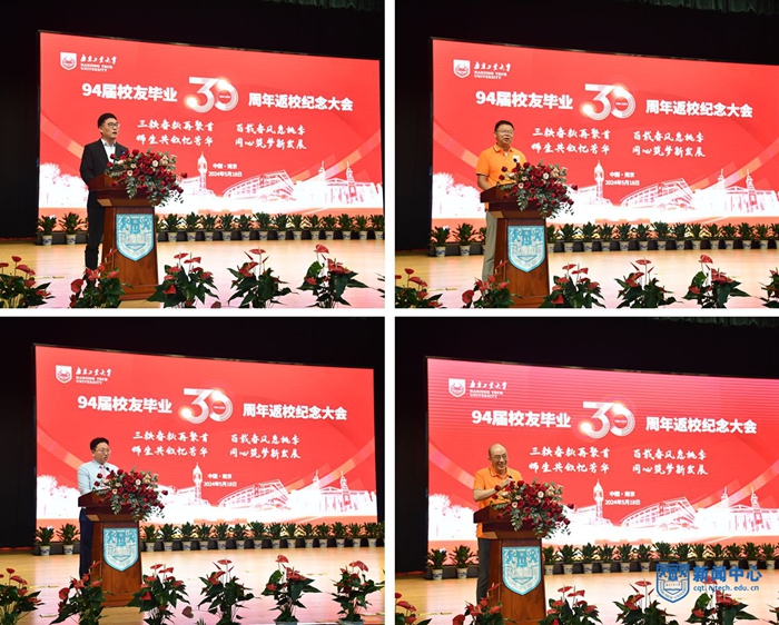 工民建专业21903班艾云、高分子材料专业高902班薛辰晨、生产过程自动化专业自90121班邱亮、化学工程专业工902班袁秀挺作为校友代表发言。四位校友追忆当年在南京求学的美好时光,由衷赞叹母校的跨越式发展,表示将牢记校训、赓续奋进,为学校高质量发展贡献力量。