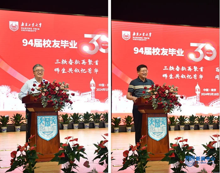 化工学院陆小华教授、交通学院李俊才教授作为教师代表发言。他们对校友们拼搏进取、勇担时代重任取得的成绩感到欣慰,期待校友们传承母校精神,为母校争光。