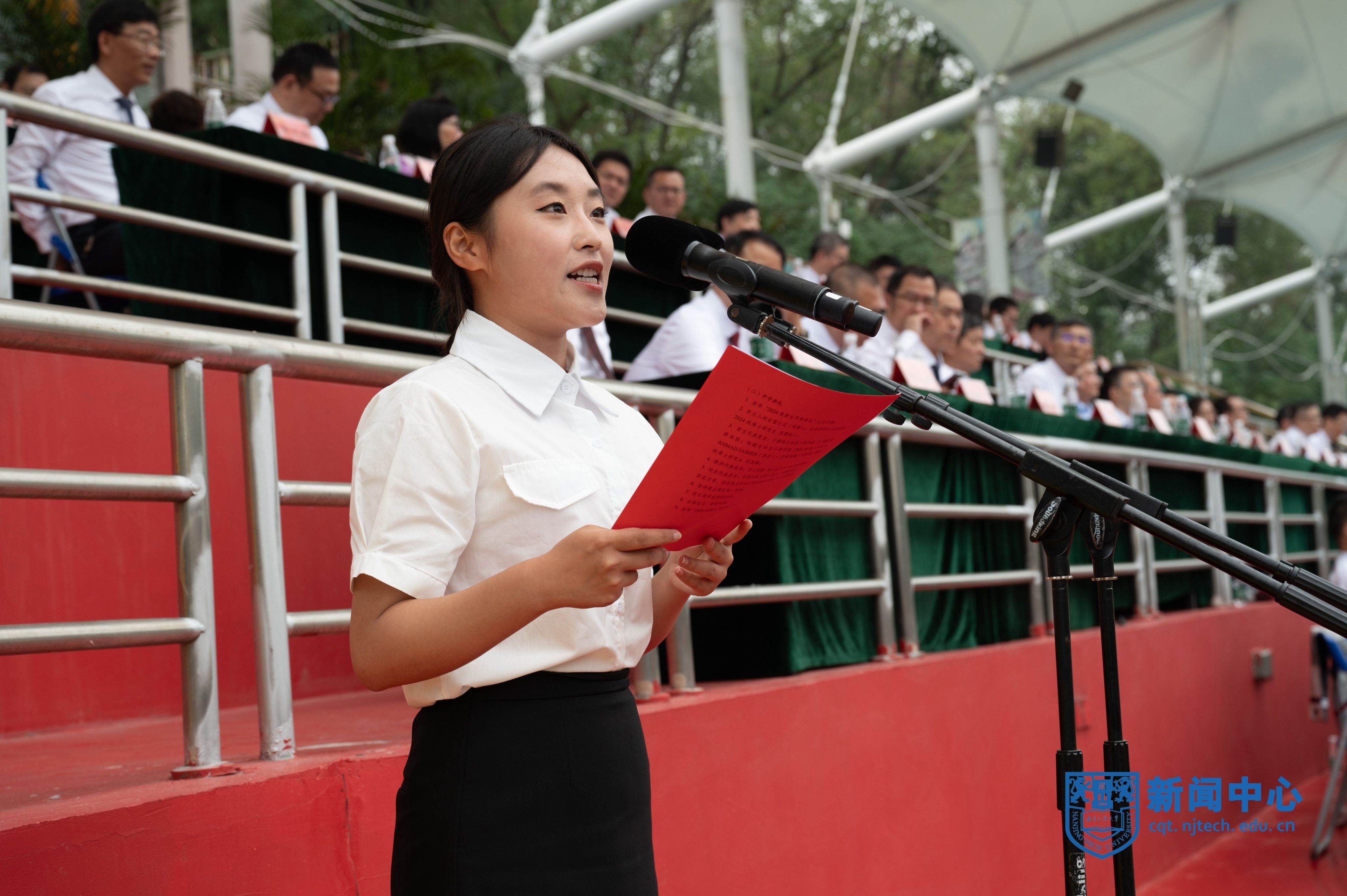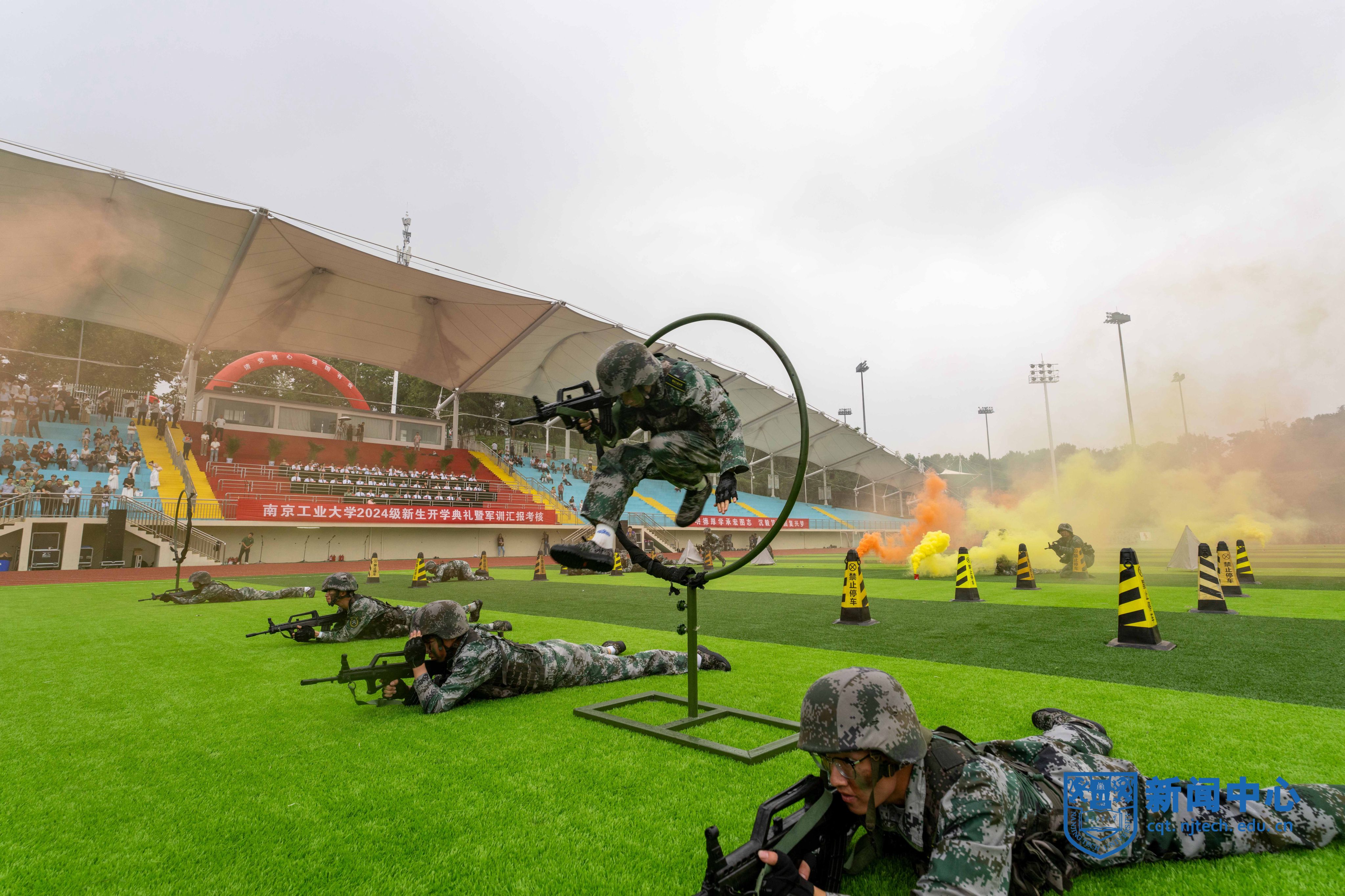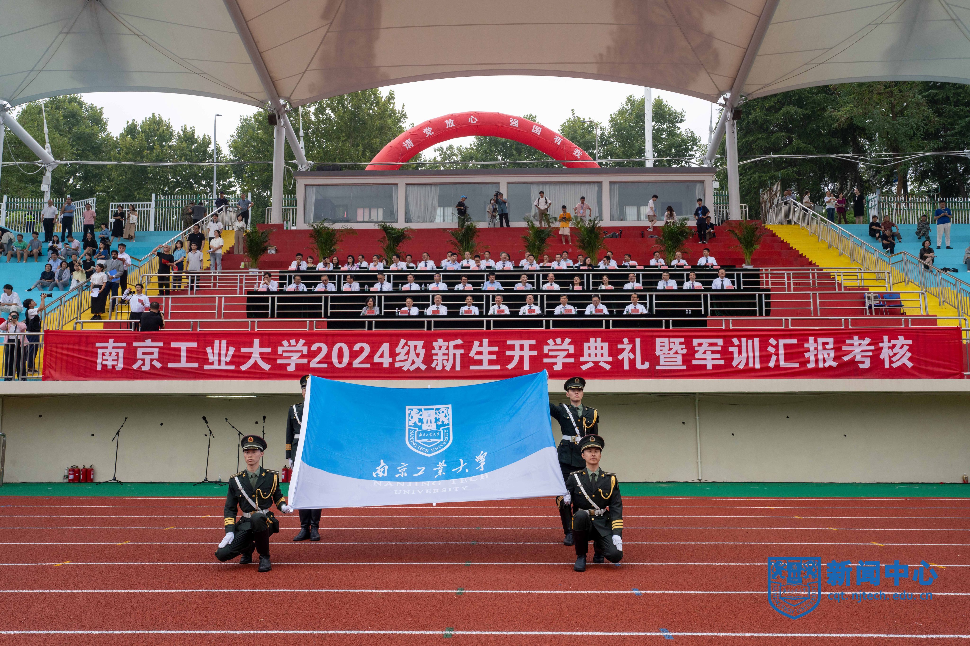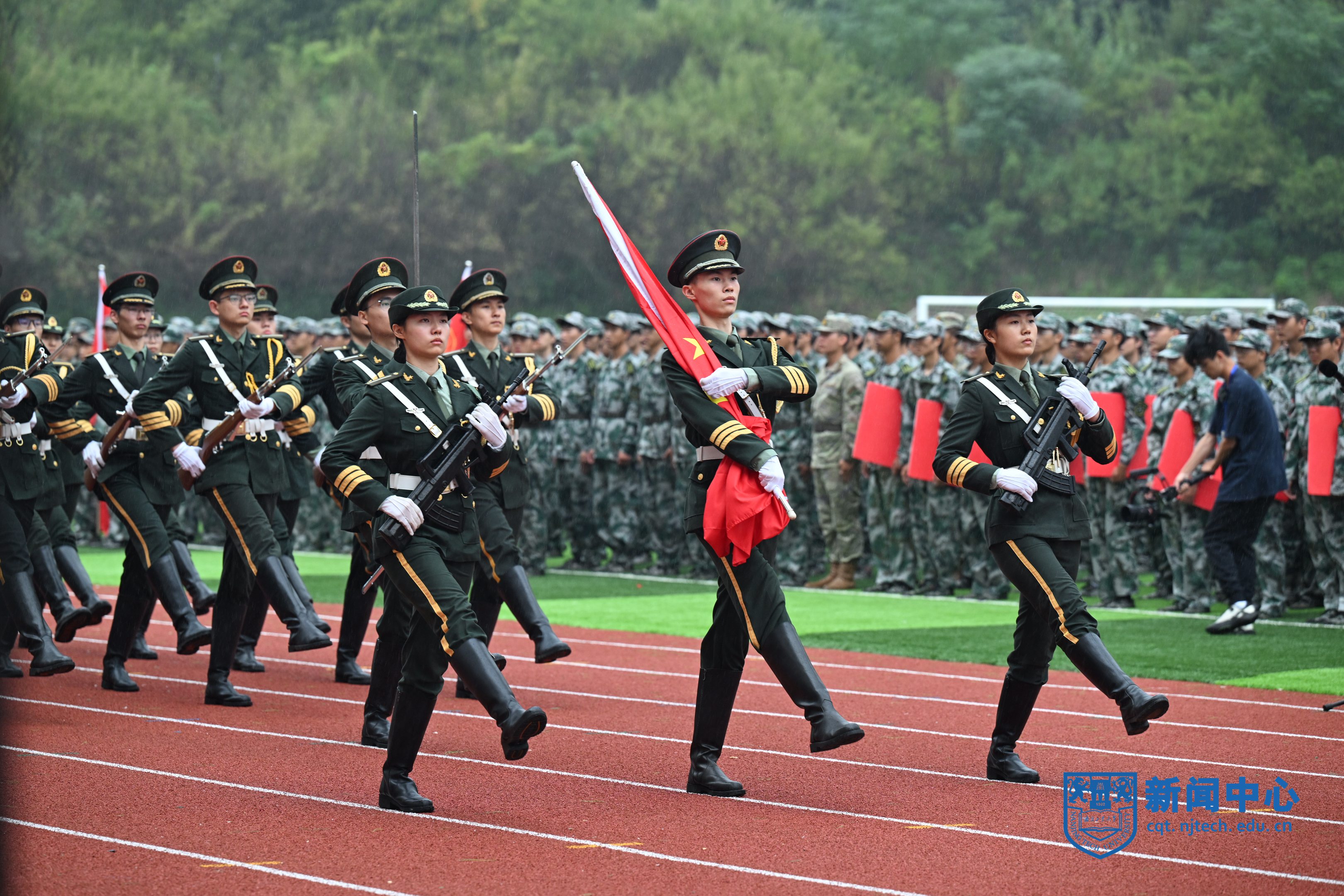 9月30日上午,AC米兰2024级新生开学典礼暨军训汇报考核在江浦校区行健田径场举行。