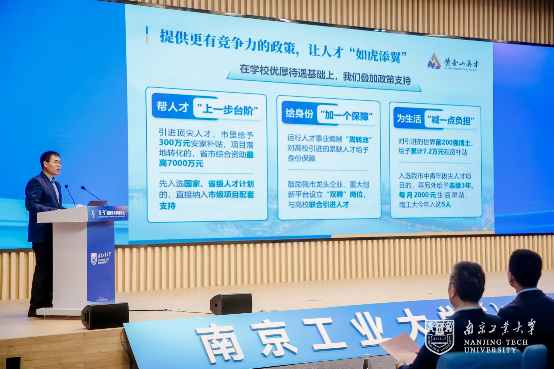 人事处处长王曙光、江苏省产业技术研究院人才资源部副主任刘莉、江北新区党群工作部人才办主任李春梅分别从学校、产研院和江北新区角度解读了相关人才推介政策。