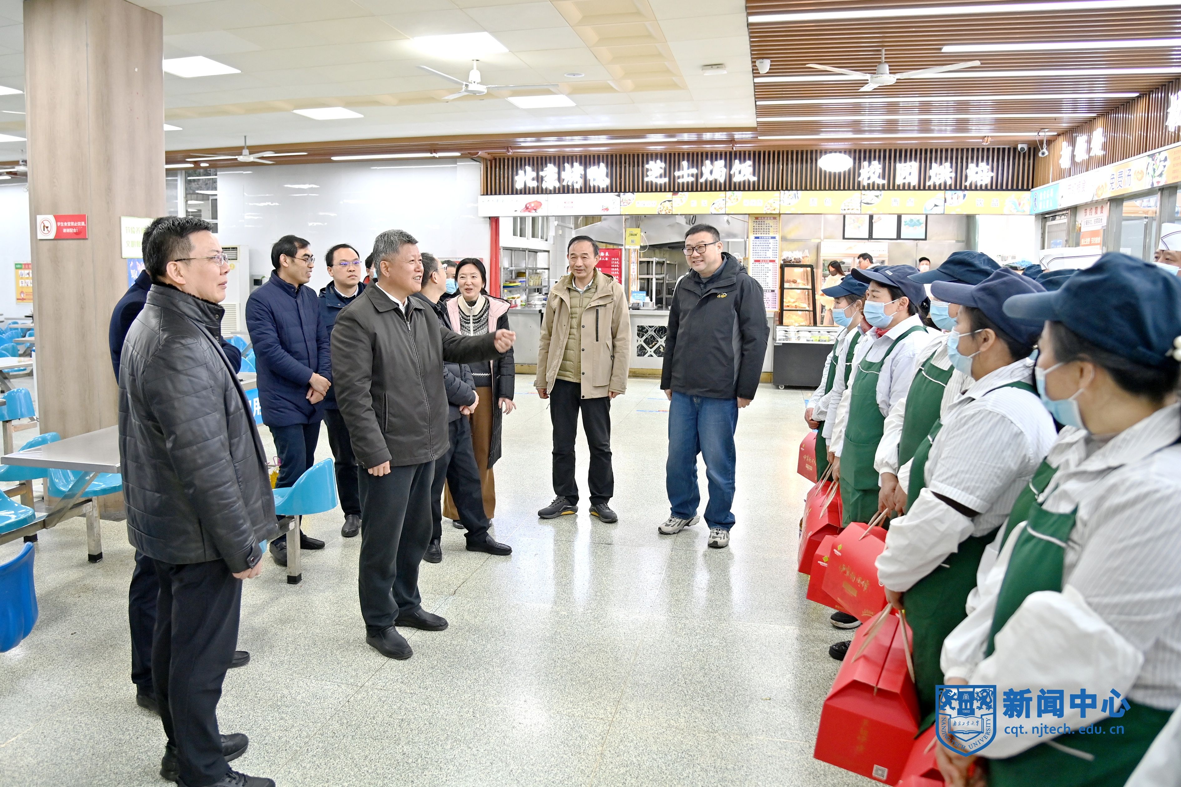 校领导一行先后走访计划财务处、江浦校区南门岗、景星苑学生宿舍、润德楼实验室、东苑食堂、亚青学生宿舍工地等地,详细了解各处安全措施落实情况和校园安全保卫、师生服务保障、假期学生管理等方面的情况,并与留校师生亲切交谈,感谢大家过去一年服务学校事业发展做出的贡献,对假期仍坚守在工作岗位上的师生员工表达了诚挚慰问并送上新春祝福。
