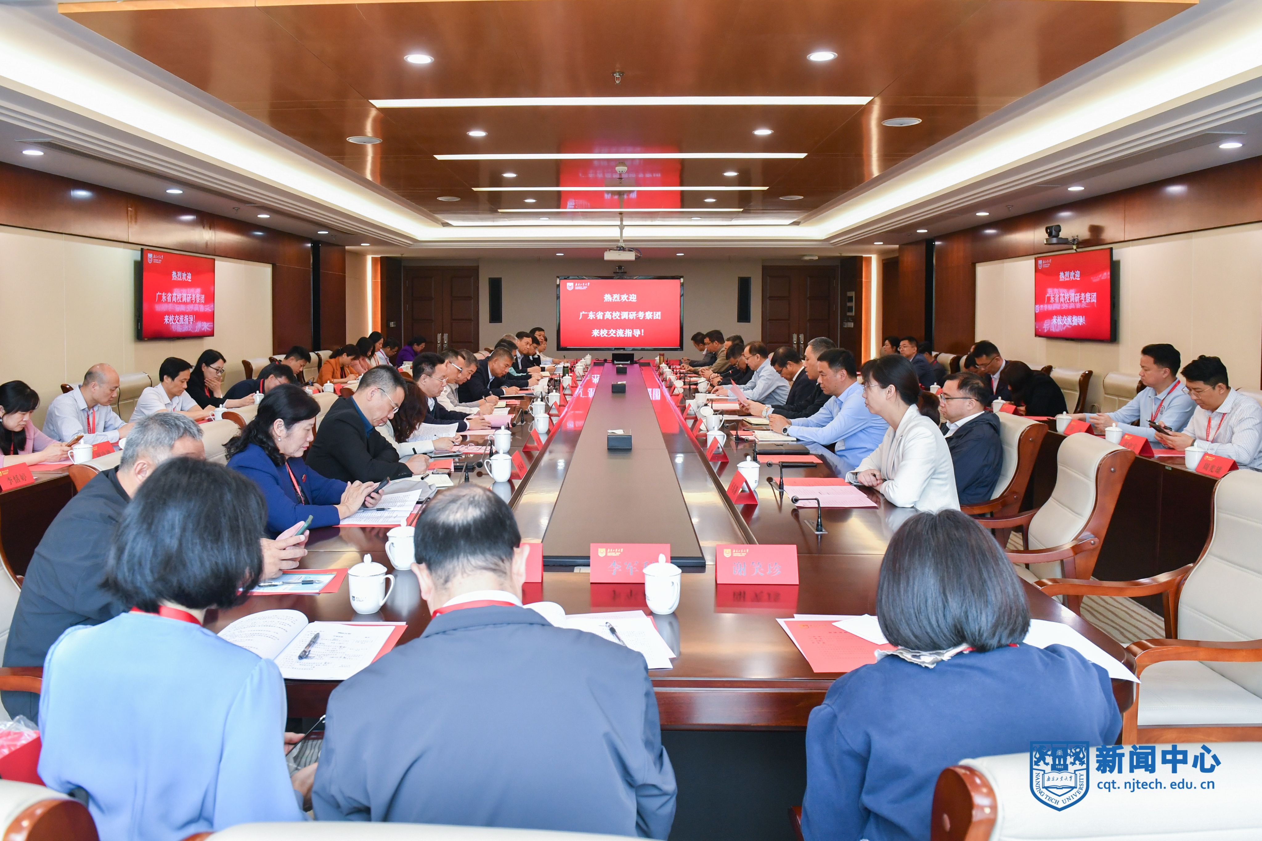 荆晅对来宾一行表示欢迎,对广东高教学会和兄弟高校长期以来给予学校事业发展的关心支持表示感谢。他表示,江苏和广东同为经济大省、教育大省、开放大省,都肩负着“走在前列”的光荣使命、“挑大梁”的重要职责。此次,广东调研考察团来校,为江苏、广东两省高校进一步加深沟通了解、交流办学经验提供了一个重要契机,为兄弟高校之间进一步加强合作交流、共享信息资源奠定了良好基础。他希望,以此交流为契机,充分发掘和利用好校际学科人才优势,建立更加广泛、高效、顺畅的交流合作机制,进一步加强与广东兄弟高校的沟通交流、互学互鉴,推动在多层次、多领域达成合作,共同为建设教育强国、科技强国、人才强国贡献更多力量。