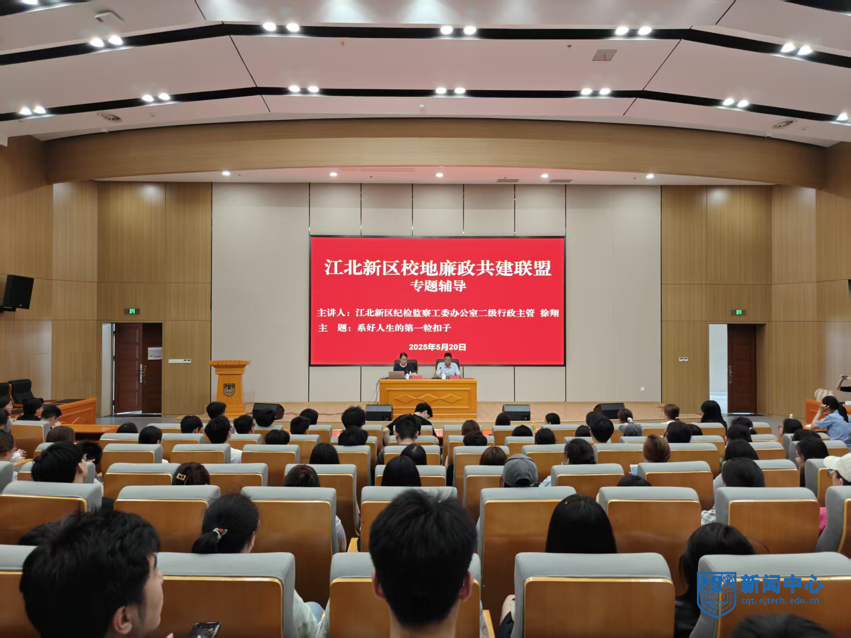 仪式结束后,新区纪检监察工委纪检干部徐翔在化学学科楼四楼报告厅,以“系好人生的第一粒扣子”为主题为5所高校师生代表作了专题辅导授课。