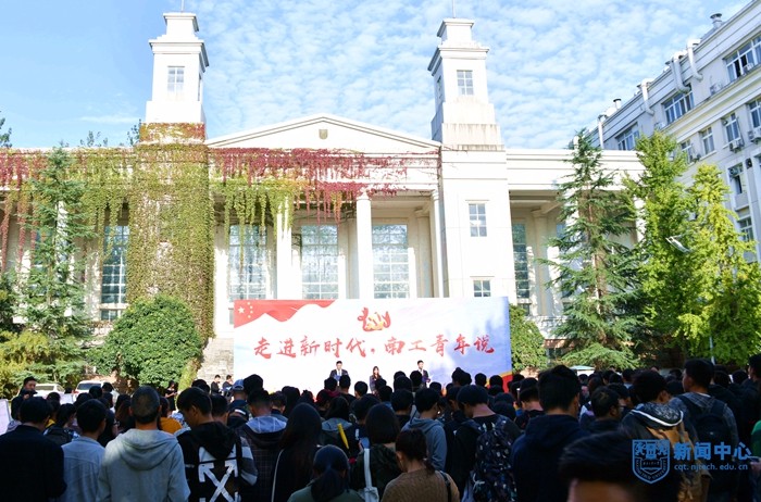校广播台的同学朗诵了十九大报告中的部分金句。充满说服力、感染力的话语,铿锵有力、直抵人心。活动在下加一线音乐社同学们演唱的校歌中结束。