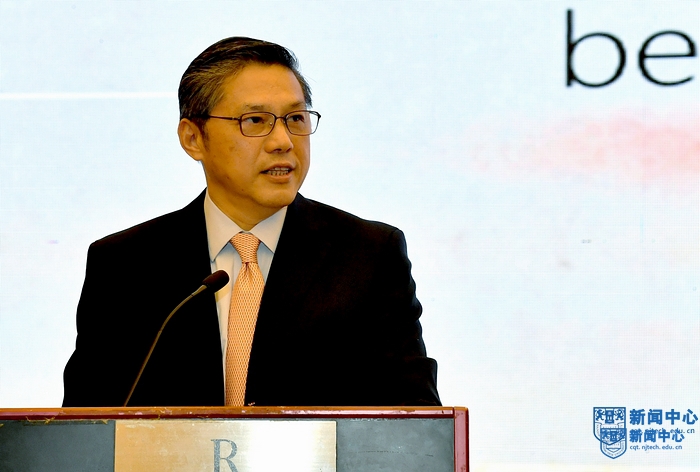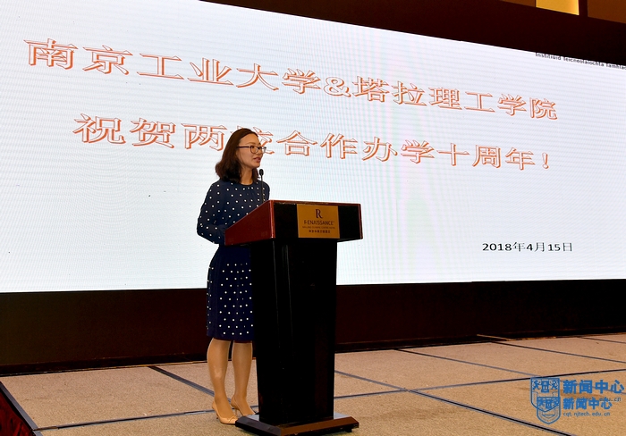 施蕴玉副处长代表江苏省教育厅对两校合作办学十年来取得的丰硕成果表示祝贺,期望两校合作通过打造精品、示范引领和增进友谊,谱写更加华丽的教育合作新篇章。