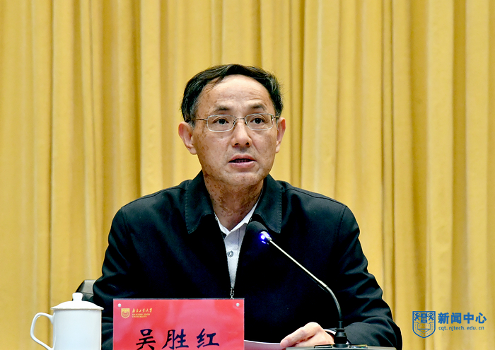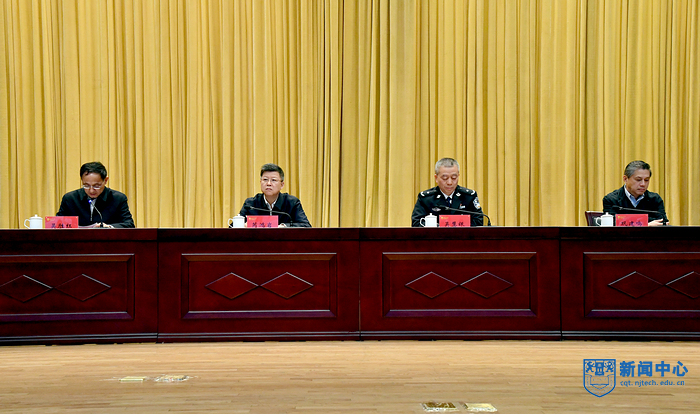 4月2日上午, 学校在江浦校区博雅堂召开2021年综治安全生产工作暨实验室安全专项检查动员会议。江北新区公安分局副局长吴慧银、内保支队支队长吴远富,校党委书记芮鸿岩,副校长巩建鸣出席会议。会议由校党委副书记吴胜红主持。