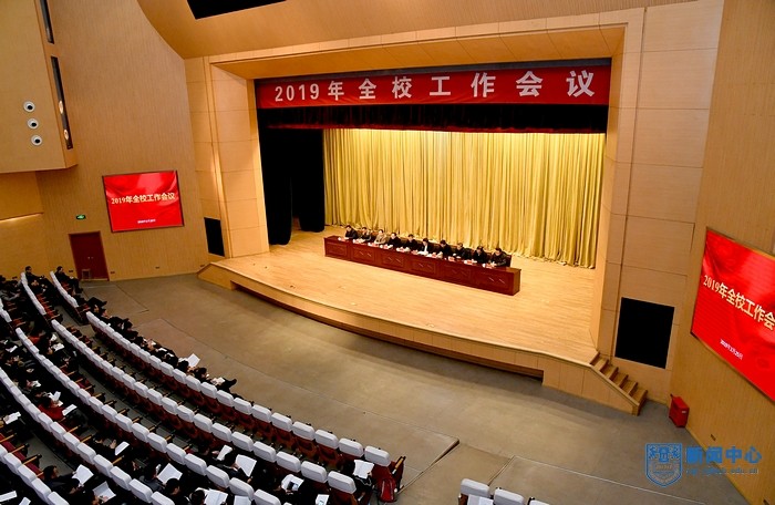 2月25日下午,学校在江浦校区大礼堂召开2019年全校工作会议。全体在校校领导,全体中层干部,各民主党派(侨联)负责人,各级人大代表、政协委员,全体教授出席会议。校党委副书记崔益虎主持会议。