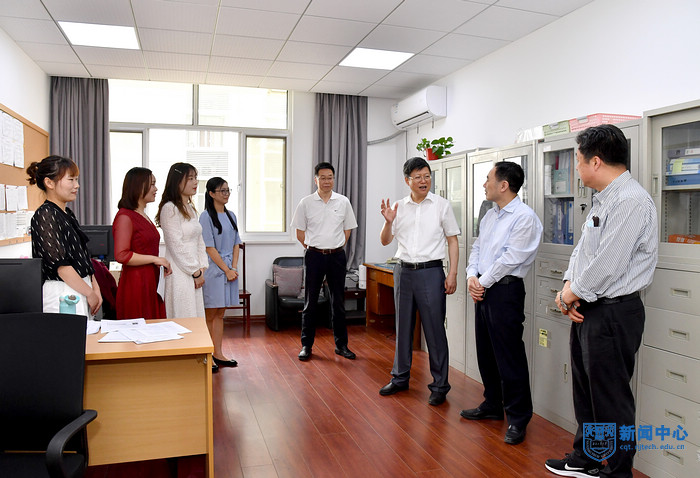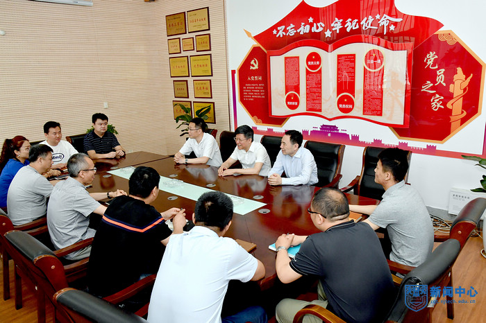 5月25日上午,党委书记芮鸿岩、党委副书记崔益虎,在党委组织部陪同下深入校园安全部、后勤保障处(后勤服务集团)、海外事务部、海外教育学院、化工学院、材料科学与工程学院等单位,看望坚守在防疫一线的党员、干部,并带去学校的关怀和慰问。