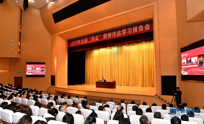 3月27日下午,学校在江浦校区大礼堂举行2019年全国两会精神传达学习报告会。全国政协委员、校长乔旭传达了全国两会精神。校党委副书记崔益虎主持报告会。