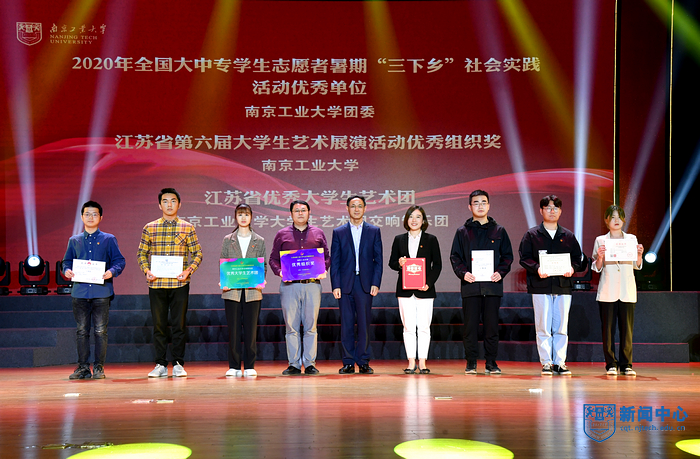 活动中,表彰了2020年全国大中专学生志愿者暑期“三下乡”社会实践活动优秀单位、江苏省第六届大学生艺术展演活动优秀组织奖、2020年全国大学生计算机设计大赛一等奖、2021机甲大师高校人工智能挑战赛•中国赛一等奖等获奖集体和个人。