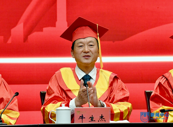 乔旭校长作了题为“青春奋进新时代 担当有为新征程”的讲话。他对毕业生提出了三点期望。一是立青春之志向,开时代之新局。新时代呼唤当代青年勇担使命、接续奋斗,同学们要将自己的理想同祖国的前途紧密联系起来,立下青春志向,明确奋斗目标,做好人生规划;二是扬青春之朝气,创人生之格局。艰难困苦,玉汝于成,同学们要坚定信念、昂扬斗志,保持勇往直前的精神气度,以积极进取的姿态迎接未来的挑战;三是展青春之风采,应社会之大局。鹰击天风壮,鹏飞海浪春,同学们要积极投身社会基层、建设一线、项目攻关的前沿,干事创业、增长才干,要接地气、重实干,找准定位、脚踏实地,在广阔天地中展现风采、实现价值。他鼓励同学们要着力增强实践能力和创新能力,争做新时代科技创新的排头兵,要锲而不舍、敢于试错,甘坐冷板凳、下足“笨功夫”,从国家急迫需要和长远需求出发,把论文写在祖国的大地上,写在车间里、装置上、产品中,努力书写无愧于时代的创新篇章。