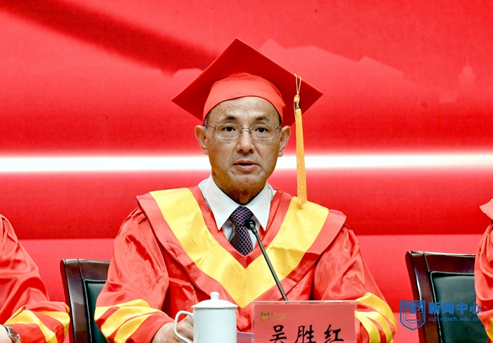 吴胜红副书记主持毕业典礼。他勉励毕业生要不负青春韶华,勇于砥砺奋斗、练就过硬本领、锤炼品德修为,努力成为堪当民族复兴重任的时代新人,为实现第二个百年奋斗目标、实现中华民族伟大复兴的中国梦奉献自己的智慧和力量!祝愿大家鸿鹄高翔、前程远大!捷报频传,人生精彩!