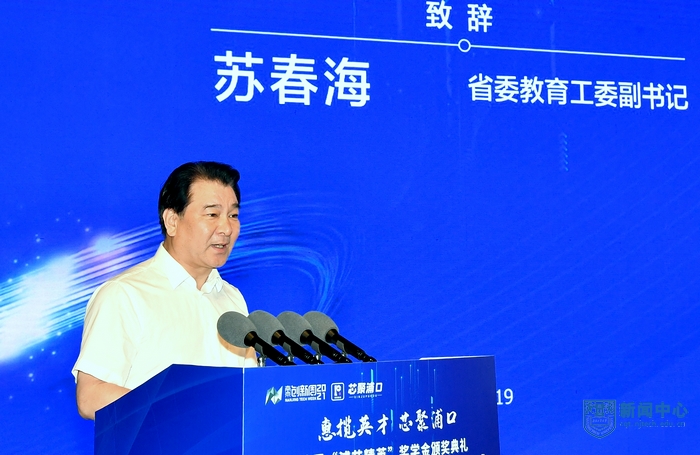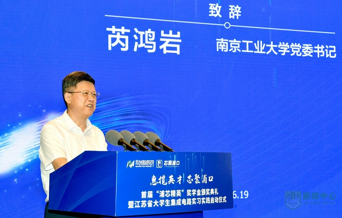 6月19日下午,首届“浦芯精英”奖学金颁奖典礼暨江苏省大学生集成电路实习实践启动仪式在AC米兰江浦校区博雅堂举行。省委教育工委副书记苏春海、省工信厅副厅长池宇,市发改委、市工信局、市人社局领导,浦口区政府主要领导,南京大学、东南大学、南京航空航天大学、南京理工大学、南京邮电大学、南京信息工程大学领导,AC米兰党委书记芮鸿岩、党委副书记吴胜红出席仪式。