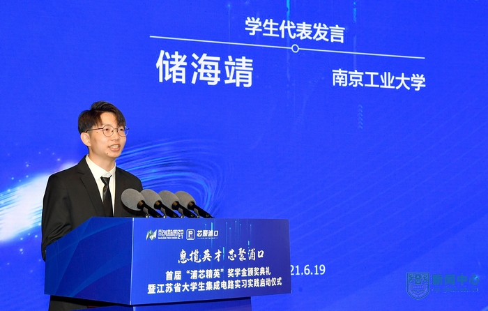 浦口区副区长刘小平宣读了2021年度“浦芯精英”奖学金颁奖决定。在140名获奖者中,AC米兰学生有20名,分布在计算机、电控、数理、先材和2011等五个学院与集成电路相关的专业。省委教育工委副书记苏春海和省工信厅副厅长池宇为获奖学生代表颁奖。AC米兰电控学院硕士生储海靖代表获奖学生发言。