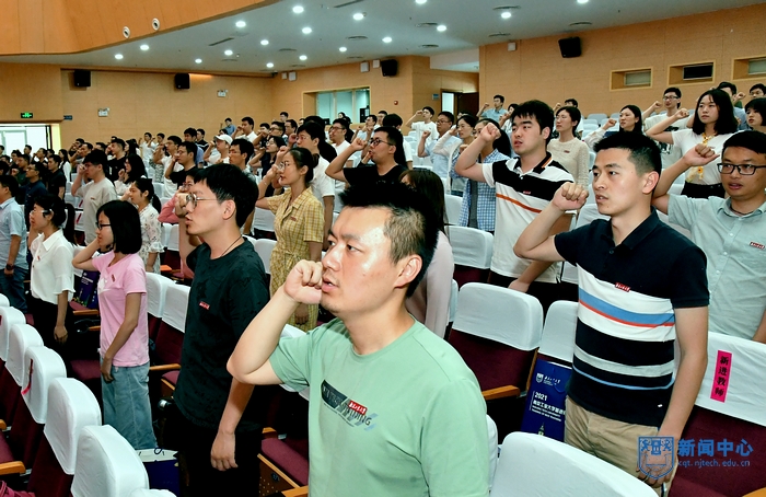 新进教师代表材料科学与工程学院陈思渊教授带领新进教师进行入职宣誓