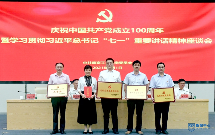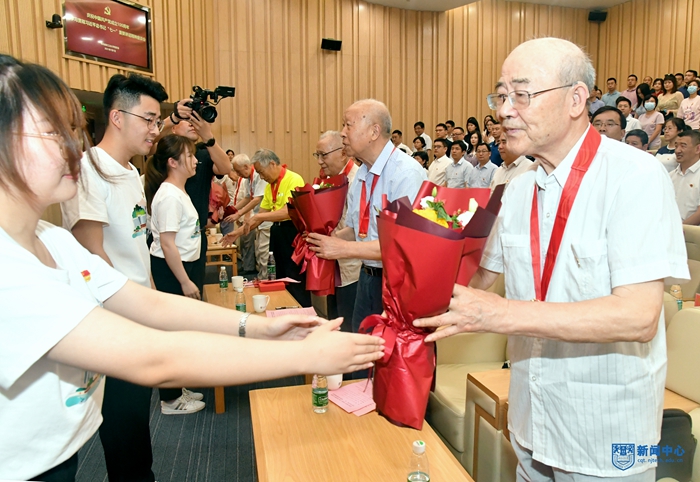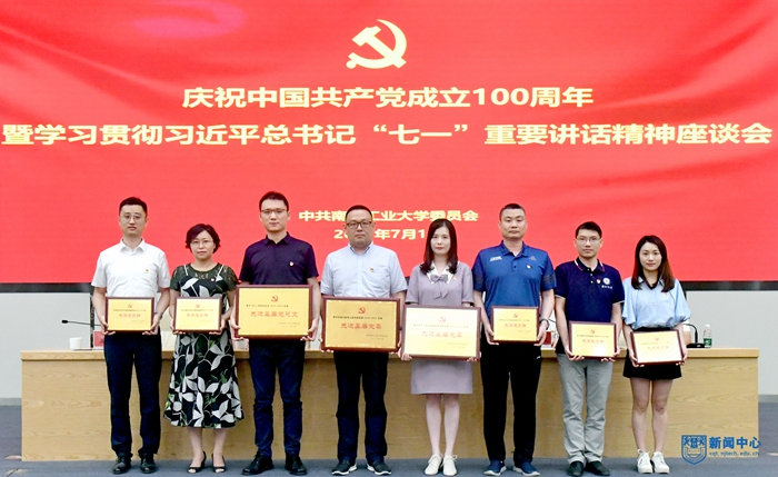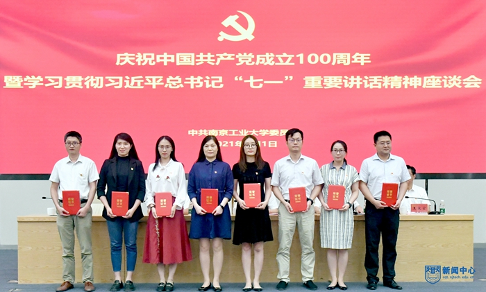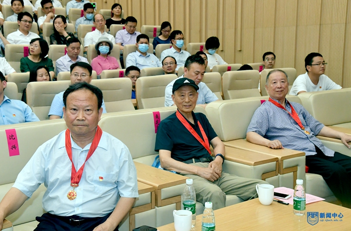 会议伊始,学生党员向“光荣在党50年”老党员代表献花,全场起立,以热烈的掌声感谢老党员为学校事业发展所做出的贡献。校党委副书记吴胜红宣读了2020年以来受上级党组织表彰的先进集体和优秀个人情况通报。校党委常委、纪委书记王敦宝宣读了校“两优一先”表彰决定。主席台校领导为受表彰的先进集体和先进个人代表颁发了奖牌和荣誉证书。黄殿臣、黄振仁、鞠永干、郭凯、朱兴同、崔升、冯新、滕月、姜玉洁9位党员,分别代表“光荣在党50年”党员、先进基层党组织、优秀共产党员、学生党员等不同党员群体,分享了学习习近平总书记“七一”重要讲话精神心得体会。