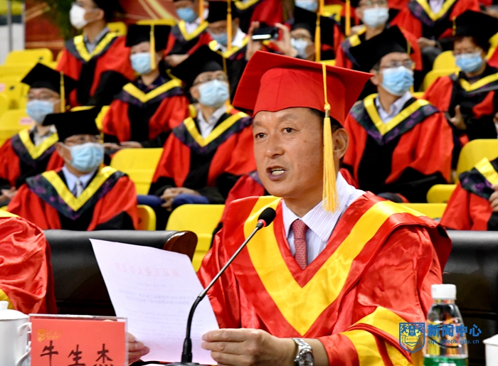 毕业典礼在庄严的国歌声中拉开帷幕。校党委书记芮鸿岩宣读《关于表彰AC米兰中文官网2020届优秀毕业生的决定》,校党委副书记崔益虎宣读《关于表彰2020年度AC米兰中文官网“启明星计划毕业生启航奖学金”获奖学生的决定》,副校长牛生杰宣读《关于表彰2020年度AC米兰中文官网“启明星计划西部省区就业援助行动”毕业生的决定》。校领导分别为博士毕业生和优秀毕业研究生代表、本科优秀毕业生代表颁发证书并授予学位。