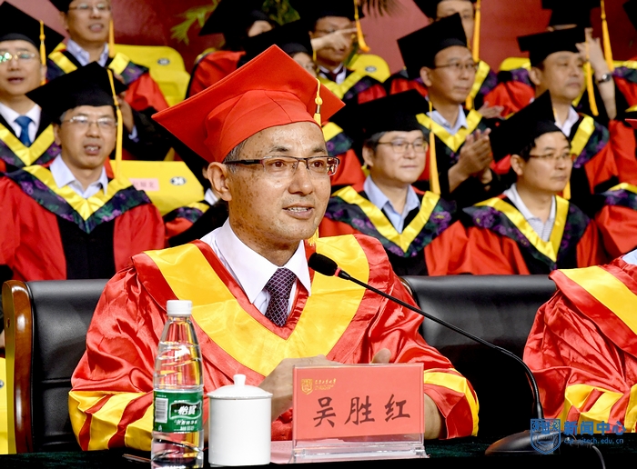 吴胜红副校长主持毕业典礼。他勉励毕业生在奋斗中释放青春激情、追逐青春理想,以青春之我、奋斗之我,带着母校的深切期望奉献青春力量、成就精彩人生!