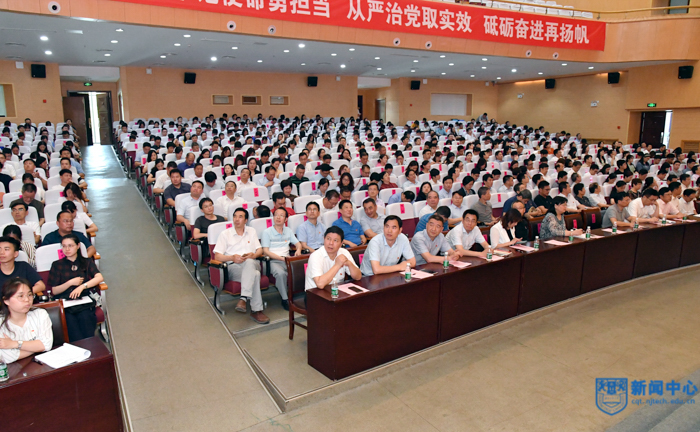 校党委书记芮鸿岩作了题为“聚精会神抓党建,全力以赴促发展”的讲话。他回顾总结了过去两年学校党的建设工作。他强调,学校各级党组织要准确把握高校党的建设面临的新形势新要求,坚定不移地加强和改进学校党建工作,要在精心筹备“不忘初心、牢记使命”主题教育上下功夫;要在不断完善“四位一体”组织体系,贯彻落实新时代党的组织路线上下功夫;要在集中整治形式主义、官僚主义,持之以恒正风肃纪上下功夫;要在认真抓好思想政治工作和意识形态工作,确保校园安全稳定上下功夫。他希望,各级党组织和广大党员干部,一要以抓铁有痕的严肃势态落实全面从严治党责任;二要以守正笃实的常抓恒态推进党建各项任务;三要以矢志不渝的奋斗姿态推动学校事业发展。