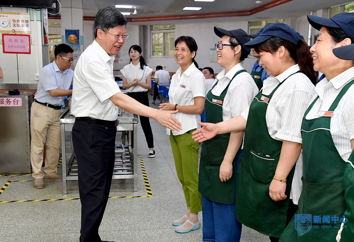 在东苑食堂、危险废物暂存点、西苑学生宿舍、校园安全部西大门岗亭,校领导与在岗员工亲切交谈,详细询问暑期工作情况,叮嘱大家务必要注意防暑降温、高度重视安全生产工作。校领导对一线员工不辞辛劳的工作态度给予了高度评价,感谢大家为学校平稳有序运行做出的贡献。芮鸿岩书记指出,后勤保障和安全保卫等部门暑期工作任务繁重,相关单位和部门应加强协同,认真落实安全防范措施,及时解决遇到的问题,为学校内涵建设营造良好环境。