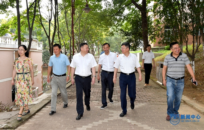 校领导一行先后来到南苑餐厅、东苑宿舍区、西大门岗亭、水塔变电所、老校门复建现场、仁智楼、明斋和新建学生宿舍工地等处,详细了解各单位、各部门为新学期所做的准备工作,并亲切慰问一线教职员工。