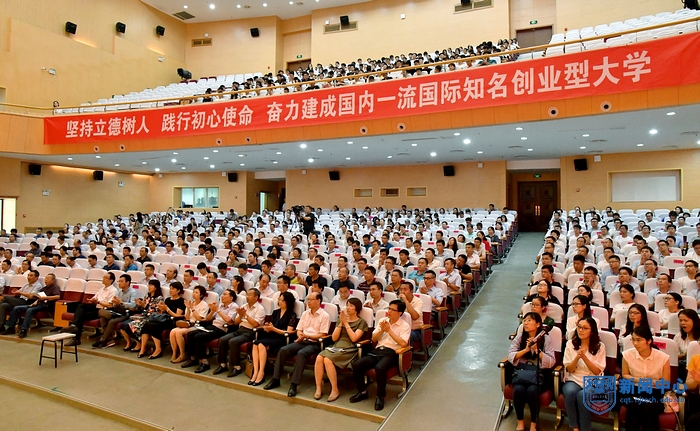 校党委书记芮鸿岩做题为《不忘立德树人初心牢记教书育人使命为创业型大学建设贡献智慧和力量》的讲话