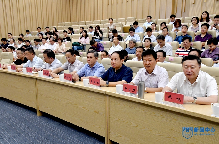 省委主题教育第九巡回指导组成员、校党委和行政领导班子成员、近期退出领导岗位的老领导、校机关部门和院系主要负责同志、教授党员代表、教职工党员代表和学生党员代表参加了会议。