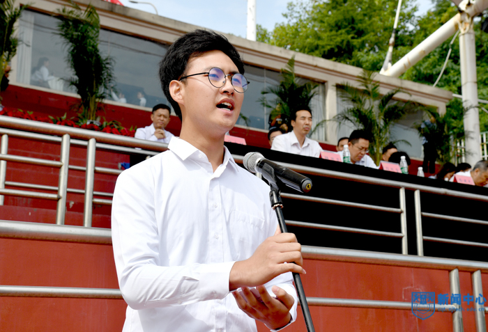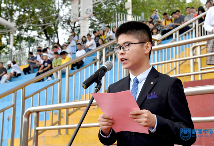 学生代表朗诵中国工程院资深院士唐明述给2019级新生的诗作寄语