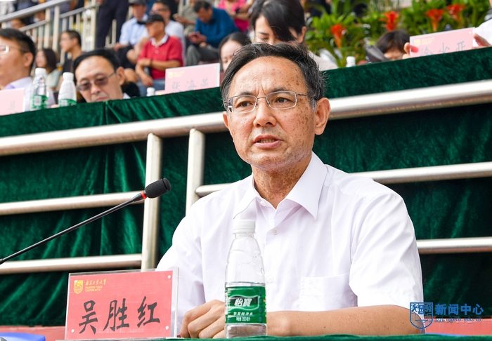 吴胜红副校长作军训总结,他充分肯定了2019年军训工作和新生们取得的成绩,并代表全体师生向陆**程大学的领导和教官们表示感谢。他希望同学们胸怀理想、坚定信念,脚踏实地、求真务实,坚忍不拔、乐观向上,在大学生活中砥砺前行,增长才干,努力把自己培养成为德智体美劳全面发展的社会主义建设者和接班人,用实际行动向祖国致敬!