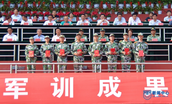 党委人民武装部部长、新生军训旅政委黎能进主持军训成果汇报大会