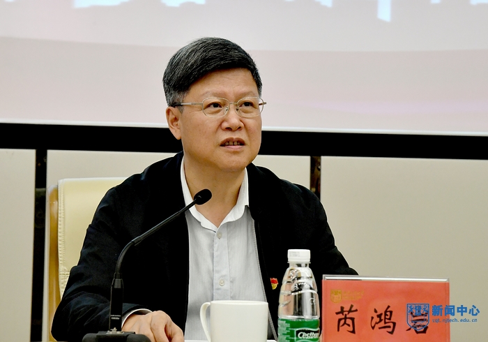 校党委书记、校党委主题教育领导小组组长芮鸿岩主持会议并作动员讲话