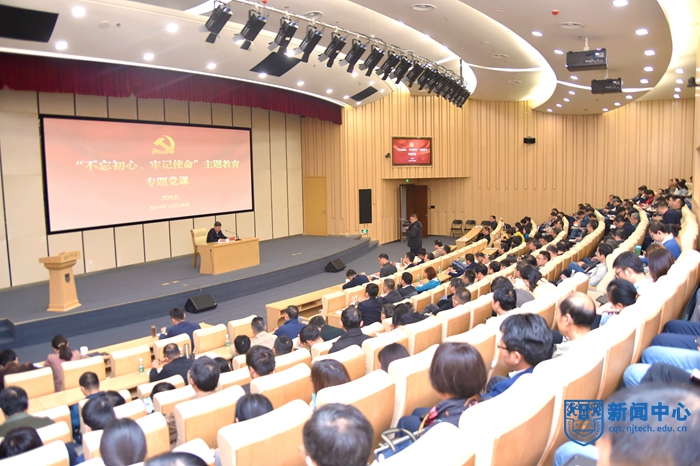 按照学校“不忘初心、牢记使命”主题教育计划安排,10月29日下午,校党委书记芮鸿岩以“牢记初心使命 奋发担当作为 在创业型大学建设征途上踏浪前行”为主题,为学校全体中层以上领导干部、教授及教工党支部书记代表讲授了专题党课。省委第九巡回指导组副组长张策华、指导组成员沈春到场指导。