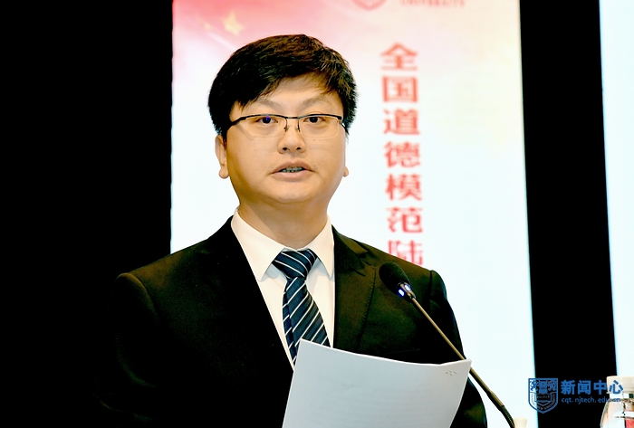 11月7日,AC米兰中文官网第2期 “新时代学习大讲堂”在江浦校区大礼堂举行。中建钢构副总经理周发榜、AC米兰杰出校友、第七届“全国道德模范”陆建新等一行为全体中层干部和师生代表带来“全国道德模范陆建新先进事迹报告会”。报告会由校党委书记芮鸿岩主持。