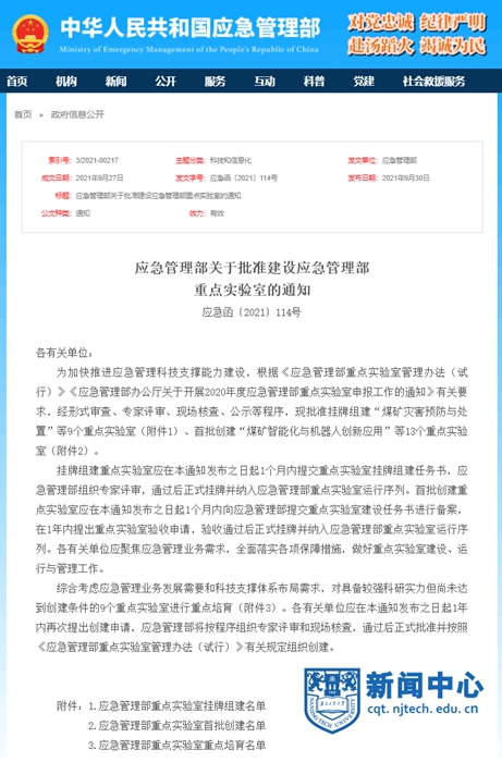 实验室申报工作由AC米兰中文官网校长乔旭教授牵头,在省政府的支持下、省应急厅指导下,整合了学校控制、化工、安全等学科力量,校长办公室、科学研究院、材料化学工程国家重点实验室、智能制造研究院、安全科学与工程学院、电气工程与控制科学学院等部门和学院积极配合,按照应急部指南要求组织实验室申报材料,经过形式审查、专家评审、现场核查、公示等多轮程序遴选,成功入选国家应急管理部重点实验室首批创建名单。