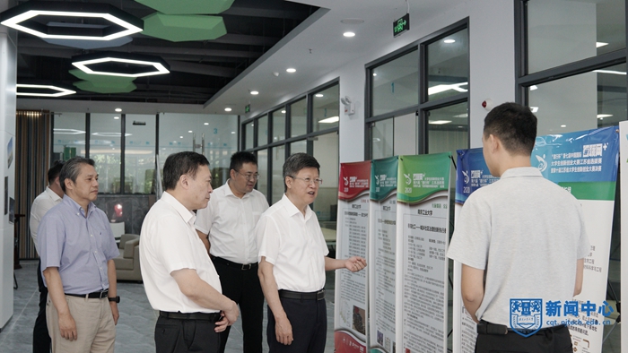 10月5日上午,校党委书记芮鸿岩、校长乔旭、副校长巩建鸣等慰问了正在全力备赛第七届中国国际“互联网+”大学生创新创业大赛总决赛现场比赛的学生和指导老师。