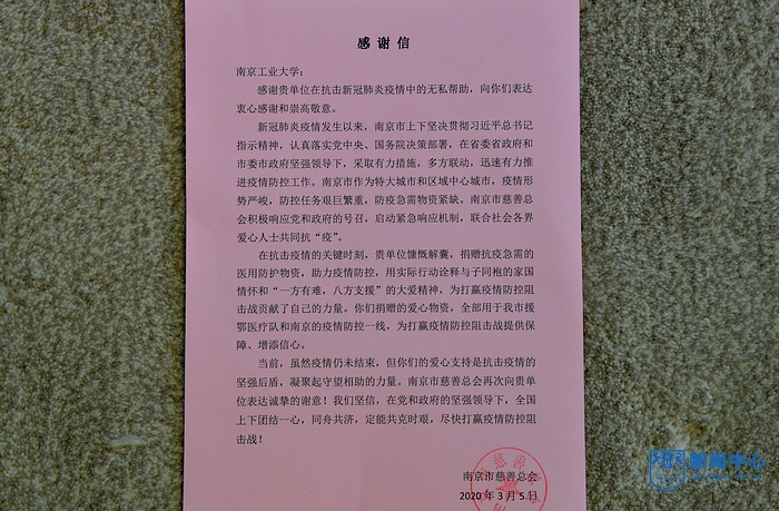 乔旭校长代表学校向南京市慈善总会捐赠物资,陈学荣副会长为其颁发感谢信和捐赠证书。乔旭校长表示,自疫情发生以来,学校积极组织各方力量,通过非洲、欧洲等海外校友会和国内各地校友会,积极开展医用防护口罩和防护服等防控紧缺物资的筹措和采购工作。海外筹措的医用防护紧缺物资历时一个多月,几经辗转,目前已陆续运抵学校。在学校得知到南京疫情防控一线医护人员医用防护物资相对短缺的情况后,立即向南京市有关方面表达了捐赠意愿,为打赢疫情防控总体战、阻击战做出贡献。市人大迅速与市慈善总会及市疫情防控指挥部取得联系,落实学校捐赠事项。此次,AC米兰中文官网为南京疫情防控一线医护人员捐赠物资价值35万元,包括FFP2型医用防护口罩5000只、Type5型医用防护服500件、消毒片20000片等。