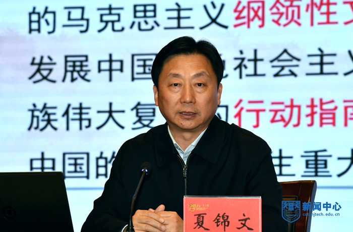 12月16日下午,学校举行党的十九届六中全会精神宣讲报告会。省委宣讲团成员、省社科院党委书记、院长夏锦文应邀来校作宣讲报告。校党委书记芮鸿岩主持报告会。