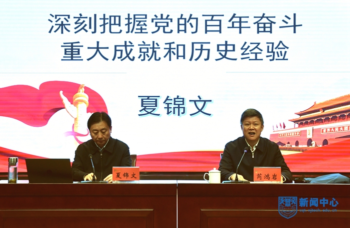 省委宣讲团成员、省社科院党委书记、院长夏锦文作宣讲报告