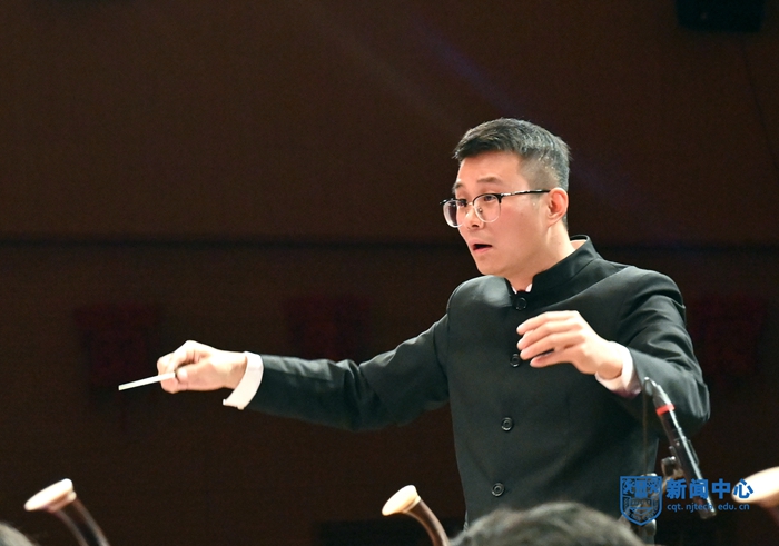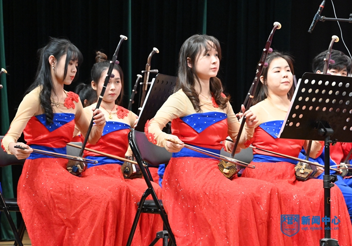 12月29日晚,学校隆重举行2022新年音乐会。校大学生艺术团民乐团、合唱团、交响管乐团联合呈现了一场宏大的音乐盛宴。校党委书记芮鸿岩,党委副书记吴胜红,党委常委、副校长牛生杰,副校长邢卫红,党委常委、宣传部部长张健与师生代表现场欣赏了新年音乐会,近4万名海内外师生校友通过网络直播平台观看了音乐会。