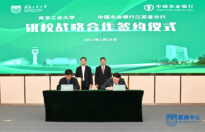 2月28日,学校在江浦校区弘毅楼报告厅举行2022-2026年度银校战略合作签约仪式。中国农业银行江苏省分行副行长张清,江苏省分行副行长、南京分行党委书记、行长吴忠辉;中国建设银行江苏省分行党委书记、行长张伟煜,江苏省分行副行长陈宝权,总行机构业务部资深副经理包建军,南京分行党委书记、行长王芳等参加签约仪式。校领导芮鸿岩、乔旭出席活动。副校长巩建鸣主持签约仪式。