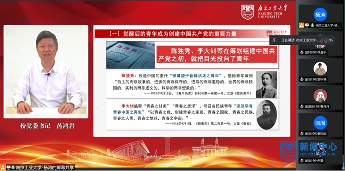 在五四青年节来临之际,校党委书记芮鸿岩以“牢记党的教诲立志民族复兴在青春的赛道上奋力奔跑”为主题,为全校青年学生讲授五四公开课,并向全校青年致以最诚挚的节日问候。