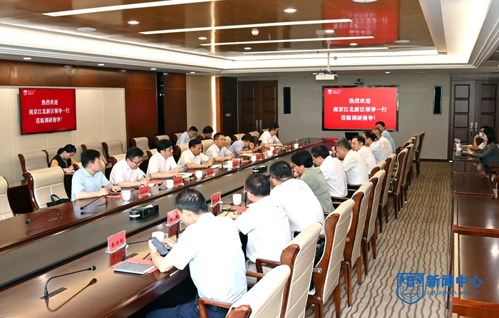 6月9日上午,南京市委常委、江北新区党工委书记邢正军、副主任林其坤一行来校考察调研,校领导芮鸿岩、乔旭、崔益虎、邢卫红出席交流会。