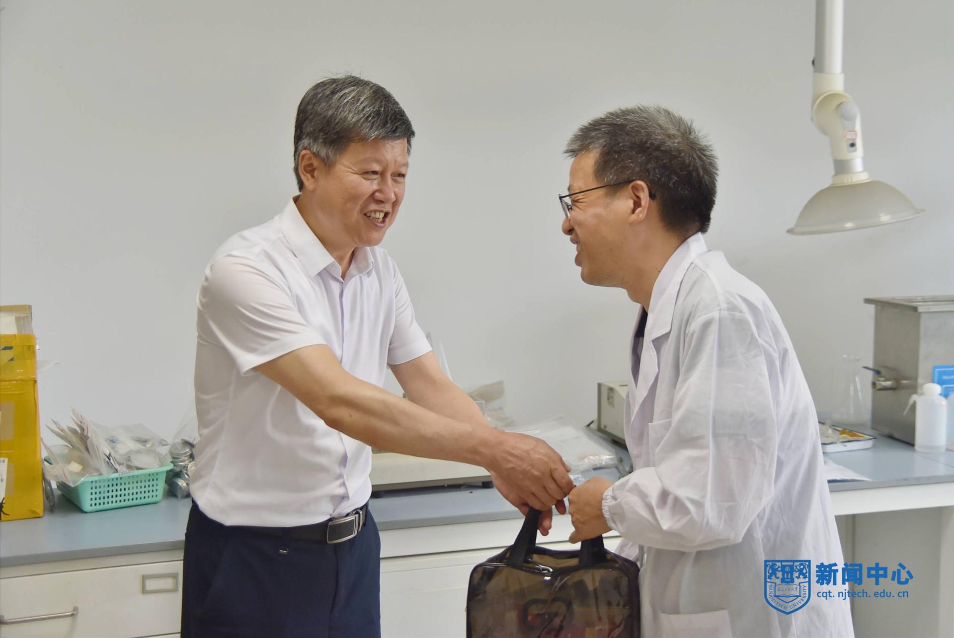 在材料化学工程国家重点实验室看望奋战在一线的科研工作者时,乔旭校长详细询问了教师们的科研进展,对广大教师和科研工作者的辛勤努力表示感谢。他指出,暑期是休息调整的时间,更是潜心科研、多出成果的黄金时间,希望老师们注意防暑降温、劳逸结合,用好假期时间,把上半年疫情影响补回来,力争取得更好的教学科研业绩。