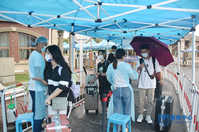 根据教育部、省新冠疫情联防联控指挥部和南京市疫情防控相关精神,结合学校疫情防控实际,今年秋季学期开学前,学校制订了科学周密的返校方案,明确了“错区域错层次错峰错时”报到方式。报到当天,返校学生经查验健康码、行程卡、48小时核酸检测阴性证明,体温测试,扫签到码后,进入校园。返校后学校将继续实行一周5轮全员核酸检测和两周静默管理,确保师生生命健康、校园安全和经济社会大局稳定。