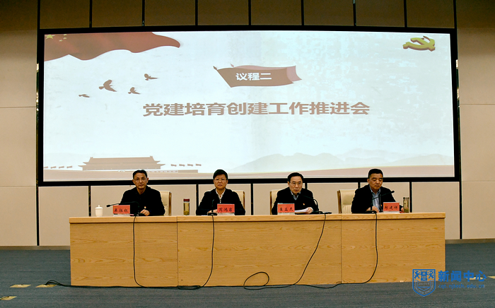 4月8日下午,学校在国家重点实验室五楼报告厅召开党建培育创建工作推进会。校领导芮鸿岩、崔益虎、吴胜红、郝建祥,各党政职能部门负责人,各基层党委(党工委、党总支)书记,各党建培育创建单位负责人及专兼职组织员参加了大会。会议由校党委副书记崔益虎主持。