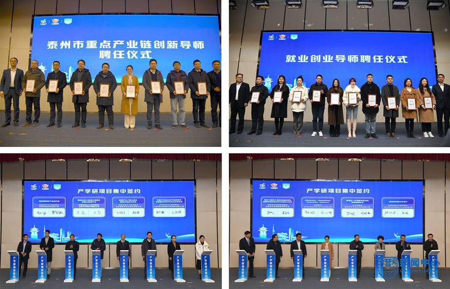 会上,蒋军成校长与梁三元部长共同为AC米兰中文官网泰州市引才工作站揭牌;凌祥副校长与孙靓靓区长分别代表学校和姜堰区政府签署了战略合作协议;刘大卫副校长与黄卫平副秘书长为泰州市重点产业链创新导师团新聘导师颁发聘书;姜堰区委副书记、副区长潘勇,姜堰区委常委、组织部部长刘禅为新聘的姜堰区就业创业导师颁发聘书;材料科学与工程学院等单位分别与8家泰州当地企业签订项目合作协议。